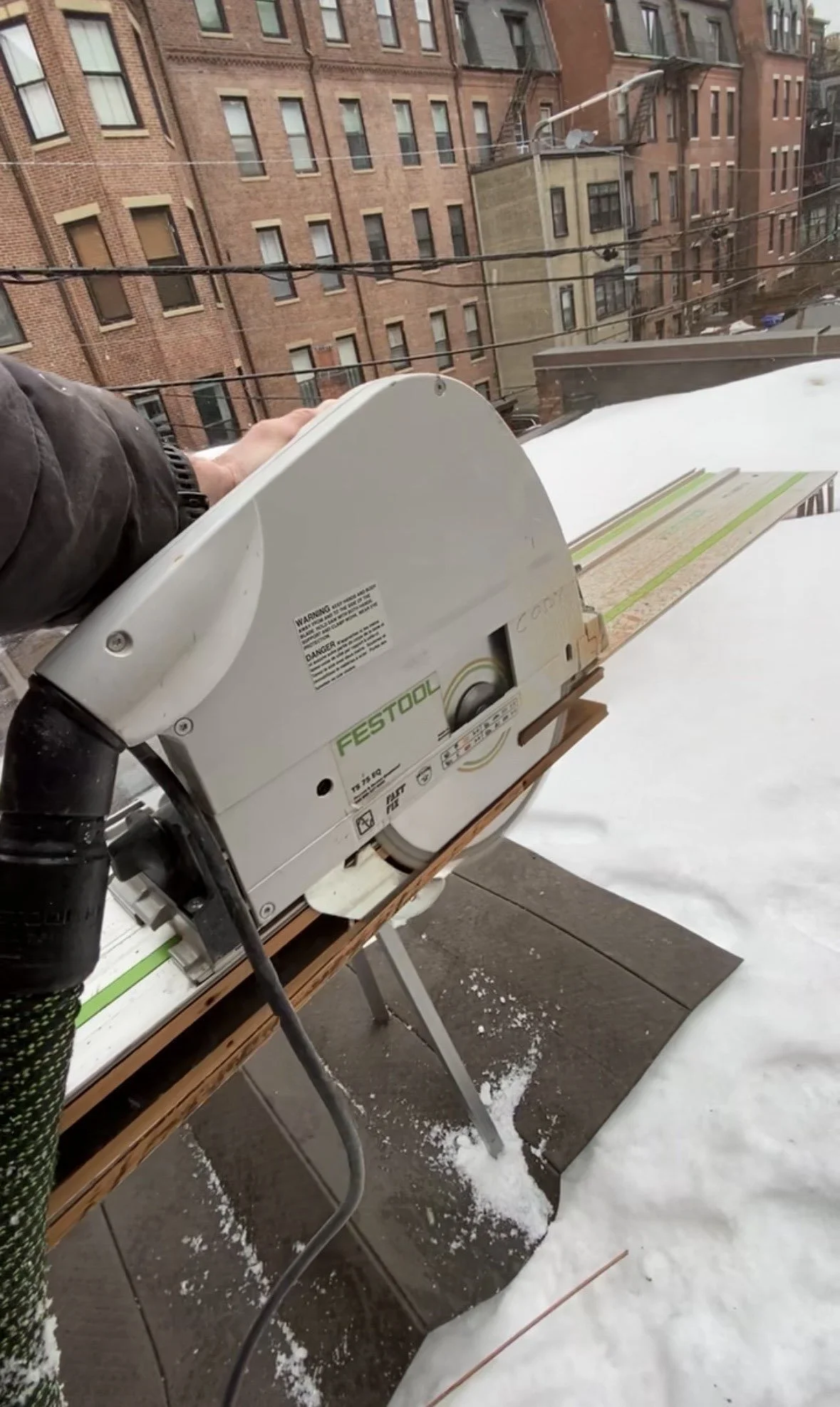 A third-floor exterior door opened directly onto a roof deck with no overhang. During heavy rain, water was entering the home and running down inside the walls.